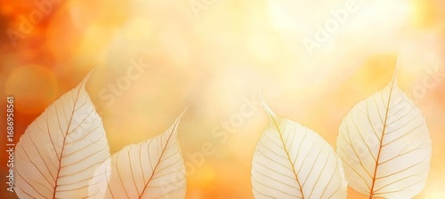 © Ilja, Fototapeta premium Abstract Blurred Soft Gradient in Autumn Orange Shades with Floating Transparent Ghostly Leaves