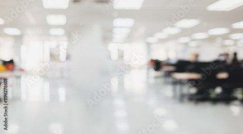 © Ton Photographer4289, Obraz premium Abstract blurred white office room background with bokeh lights at office interior.