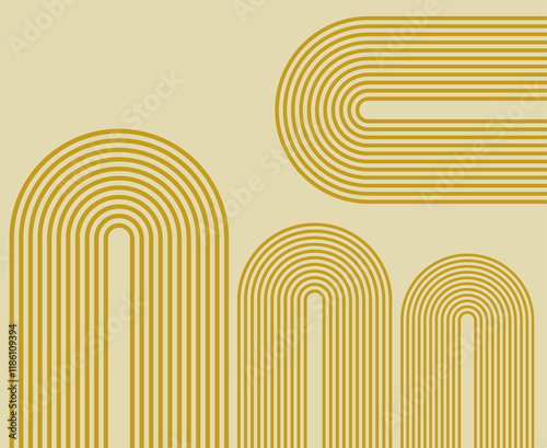 © Infinite design, Obraz premium Abstract boho seamless geometric design with golden four arches with a grey-green background