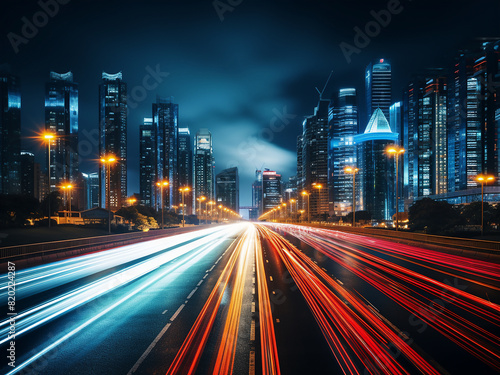 © Llama-World-studio, Fototapeta premium Abstract bokeh backdrop captures cityscape and highways at night