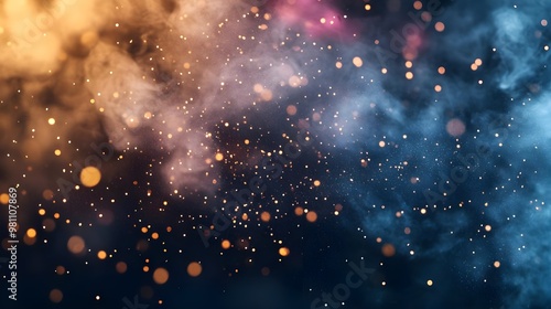© Phichaphat, Obraz premium Abstract Bokeh Background with Blue and Orange Smoke