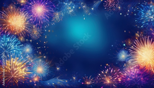 Fototapeta premium abstract border frame of colorful fireworks and sparklers background with copy space