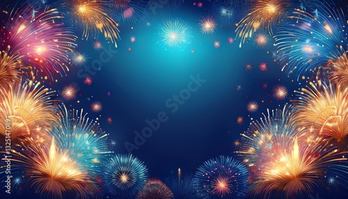 Fototapeta premium abstract border frame of colorful fireworks and sparklers background with copy space