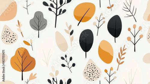 Fototapeta premium Abstract Botanical Pattern with Modern Shapes and Earthy Tones