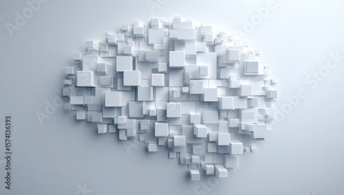 © Kika, Fototapeta premium Abstract brain, composed of many small white cubes