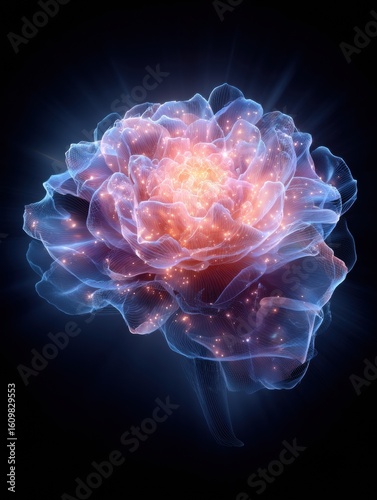 © Anat art, Obraz premium Abstract Brain Transforms Into a Blooming Flower Amidst a Soft Futuristic Backdrop With an Open Space at the Top