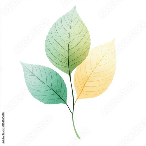 © Bernardo, Fototapeta premium Abstract Branch with Green and Yellow Minimalist Leaves in Modern Botanical Design