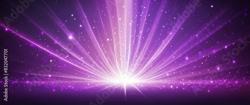 © Arceli, Naklejka premium abstract bright glitter bokeh purple rays of light beams spectrum banner illustration