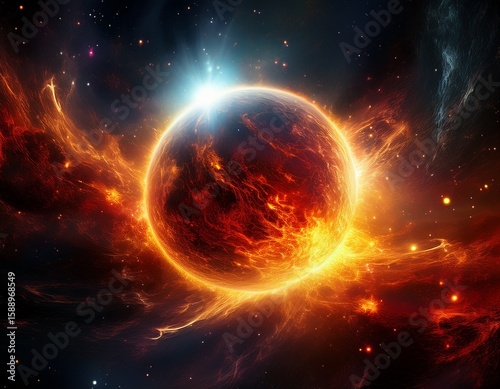 © Matilde, Fototapeta premium abstract burning star or planet in fiery nebula planet star nebula abstract burning space universe