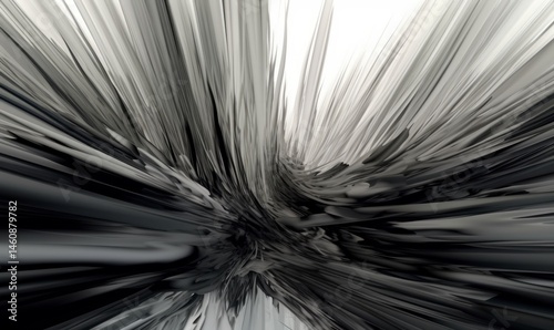 © Jeeranun, Obraz premium Abstract Burst of Black and White Lines in Motion and Flow