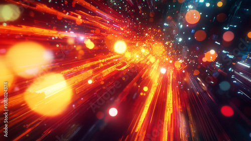 © Daniel, Fototapeta premium Abstract Burst of Light Red Orange and Gold Energy Streaks Background