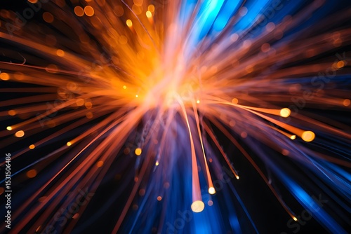 © Stromlab-3, Naklejka premium Abstract Burst of Light Vibrant Orange and Blue Energy