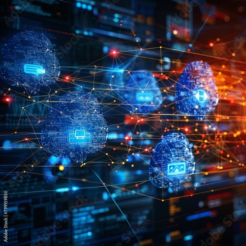 © Natalia, Fototapeta premium Abstract business communication wallpaper, speech bubbles connected by thin lines, communication flow theme