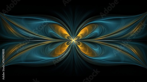 Fototapeta premium Abstract Butterfly Fractal Art, Teal and Gold Hues