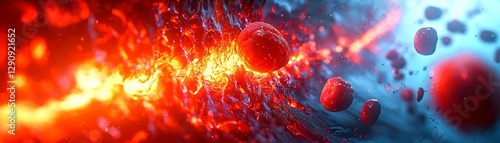 © Syphoera, Obraz premium Abstract Cellular Visualization with Vibrant Colors and Dynamic Composition Rendered Detail