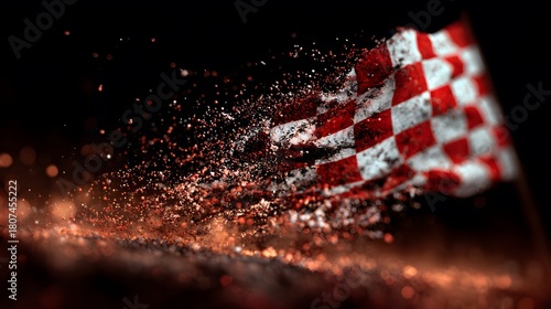 Naklejka premium Abstract checkered flag with particle effects, representing speed and victory