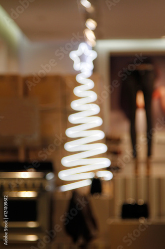 © yulyao, Obraz premium Abstract christmas tree background with defocused lights on the storefront