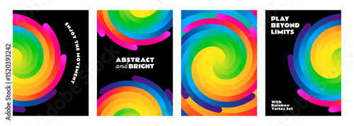 Obraz premium Abstract Circle Lines with Gradient. Vector Color Pattern on Black Background. Swirls and Spiral Gradient Elements