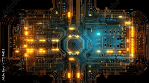 © rulrralr, Fototapeta premium Abstract Circuit Board: A Digital Metropolis