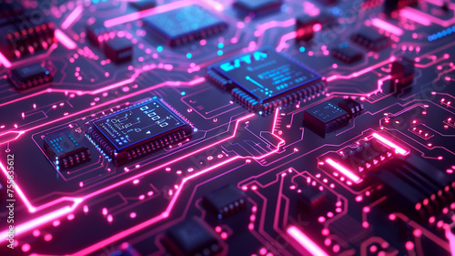 © Fantastic, Obraz premium abstract circuit board background with glowing lines.