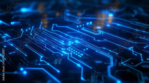 Obraz premium Abstract circuit board close-up; complex technology background; potential use...
