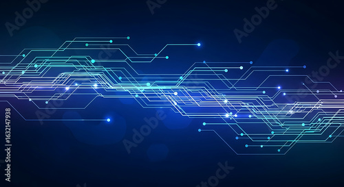Fototapeta premium Abstract Circuit Board Design with Glowing Blue Lines.