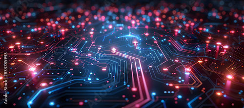 Obraz premium Abstract circuit board design with glowing connections and a dark gradient...