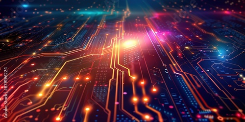Fototapeta premium Abstract Circuit Board Design with Glowing Lines