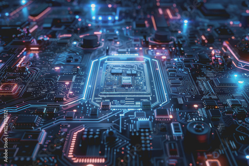 Obraz premium Abstract circuit board futuristic technology processing background.