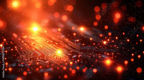 © novitasary, Fototapeta premium Abstract Circuit Board: Glowing Red Technology Background