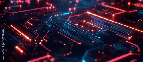 © rizky, Obraz premium Abstract Circuit Board: Neon Glow