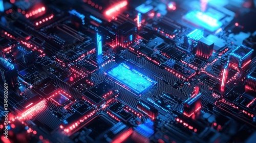 Fototapeta premium Abstract Circuit Board: Neon Glow in Digital Landscape