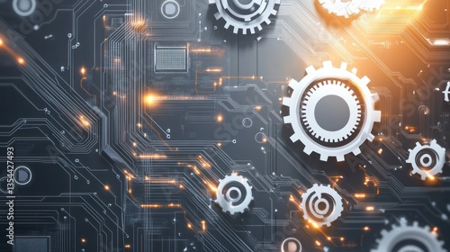 Obraz premium Abstract circuit board with gears, showcasing technology and innovation,...