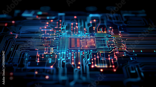 © Parsudi, Obraz premium Abstract Circuit Board With Glowing Components