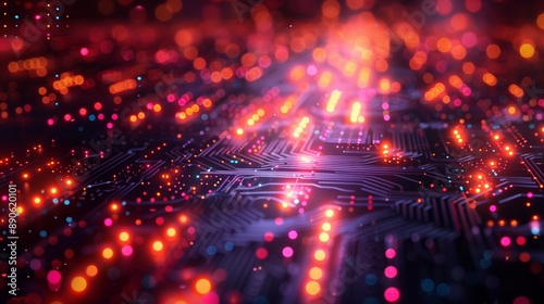 Fototapeta premium Abstract Circuit Board With Glowing Lights and Bokeh Effect