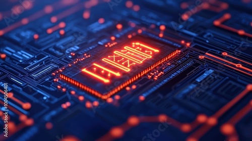 Obraz premium Abstract Circuit Board with Glowing Neon Elements