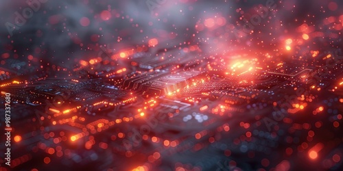 © KHAIDIR, Fototapeta premium Abstract Circuit Board with Glowing Red Lights