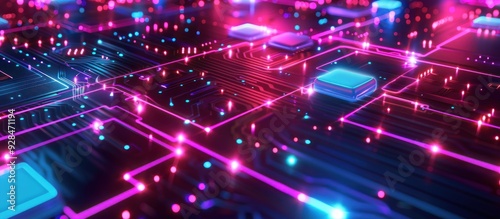 Obraz premium Abstract Circuit Board with Neon Lights