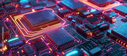 Obraz premium Abstract Circuit Board with Neon Lights
