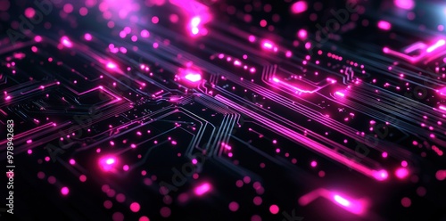 © novian, Fototapeta premium Abstract Circuit Board with Pink Neon Lights