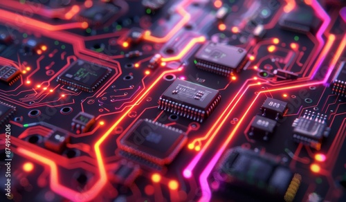 Obraz premium Abstract Circuit Board with Red Glowing Lines.