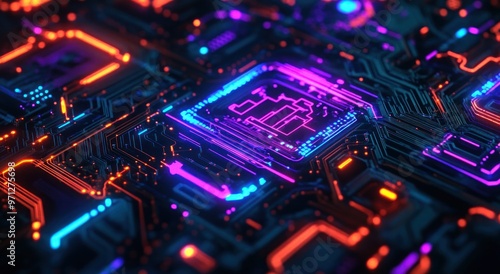Obraz premium Abstract Circuitry Glowing with Neon Lights