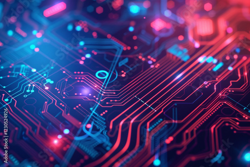 © ssshohan, Obraz premium Abstract Circuitry with Neon Lights