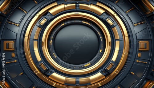 Obraz premium Abstract Circular Design with Gold and Black Metallic Elements
