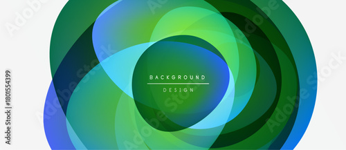© antishock, Obraz premium Abstract circular layers, vibrant greens, blues create dynamic visual effect. Text reads background design centered within form.