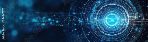 Fototapeta premium Abstract circular particle tunnel technology background concept on dark blue background digital presentation effect backdrop