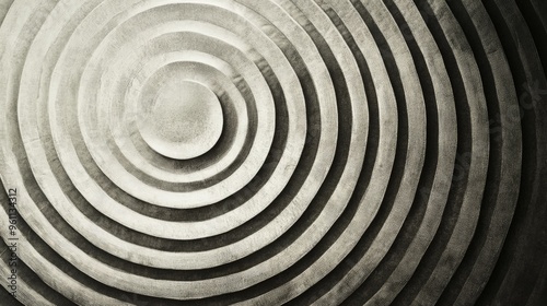 Obraz premium Abstract circular pattern with concentric rings in grayscale, creating a...