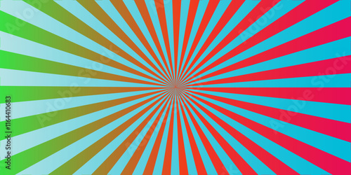Fototapeta premium Abstract circuses, stripe background design. Stripes sunburst in retro pop art style. Stripes sunburst rotating motion. Radiating Stripes in red, green and blue. Perfect for Modern Backgrounds