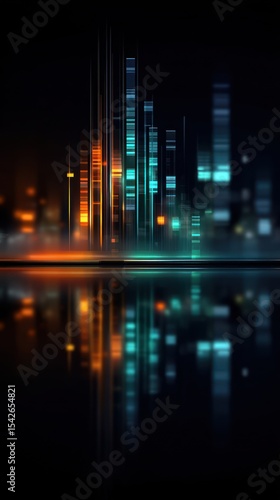 Obraz premium Abstract city lights reflecting on water at night. Blurred, vibrant colors