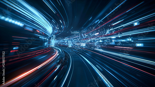 © Robin, Obraz premium Abstract City Night Light Trails with Motion Blur